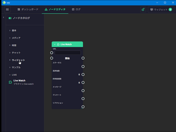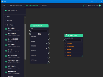 ノードを繋いでロジックを組み、OBSのブラウザソースに表示するウィジェットをリアルタイムで制御できます。