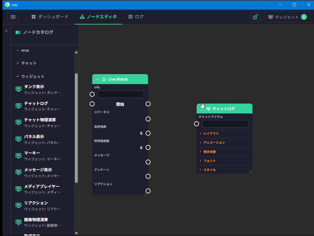 Lokiは、ライブ配信者のためのビジュアルノードエディタ搭載の演出ツールです。